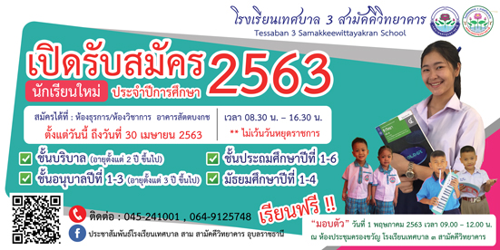 ประกาศรับสมัครนักเรียน ประจำปีการศึกษา2563